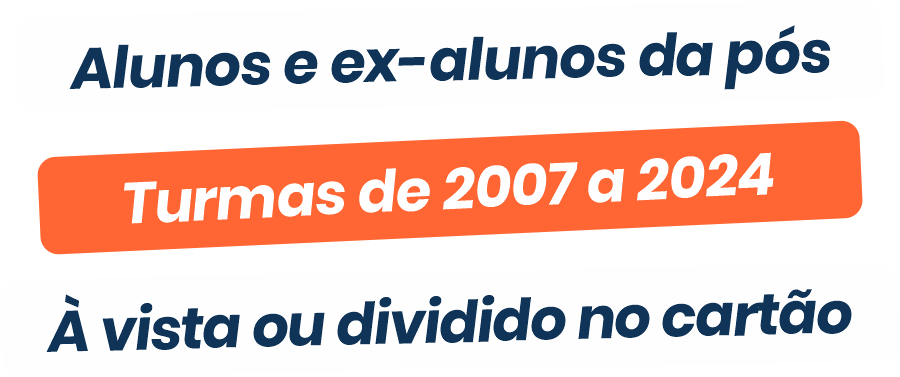 Os descontos variam conforme o período em que o aluno cursou a Pós-Graduação, podendo chegar a até 70%, de acordo com as categorias abaixo.