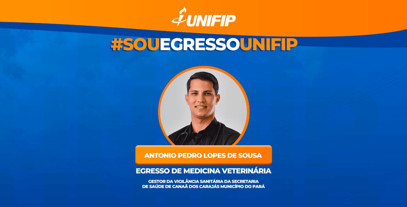 O curso de Medicina Veterinária do Unifip segue formando profissionais que se consolidam no mercado de trabalho e se tornam referência em suas áreas de atuação. Um exemplo de sucesso é o egresso Antônio Pedro Lopes, que atualmente exerce a função de gestor da Secretaria de Vigilância Sanitária de Canaã dos Carajás, no Pará, desempenhando um papel de grande relevância para a saúde pública da região.