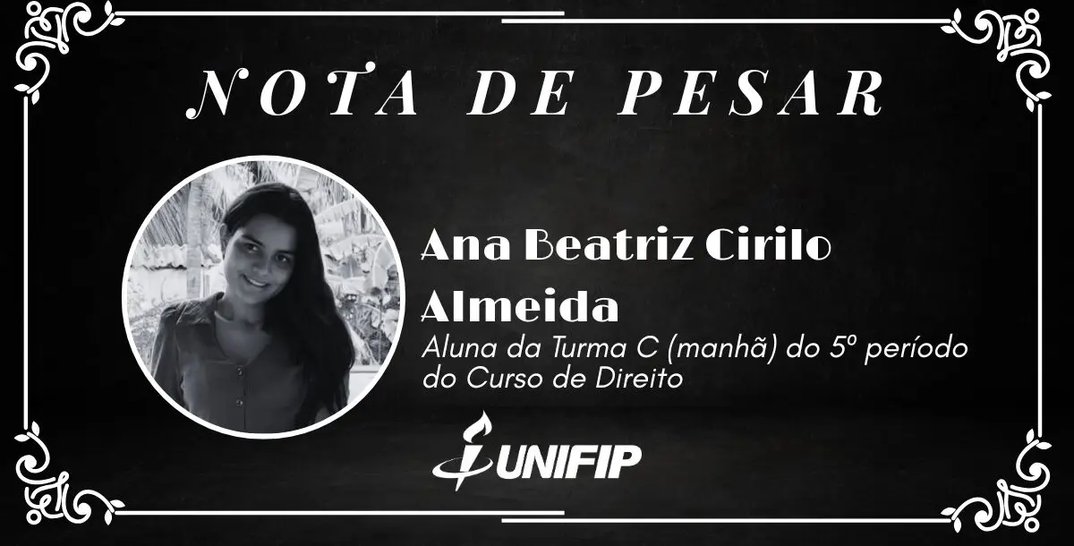 O Unifip manifesta profundo pesar pelo falecimento da discente Ana Beatriz Cirilo Almeida, aluna da Turma C (manhã) do 5º período do Curso de Direito.
