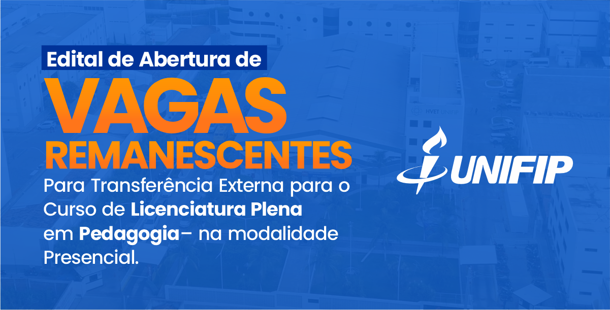 O Unifip abriu o Processo Seletivo para preenchimento de 30 vagas remanescentes destinadas à Transferência Externa para o curso presencial de Licenciatura Plena em Pedagogia.