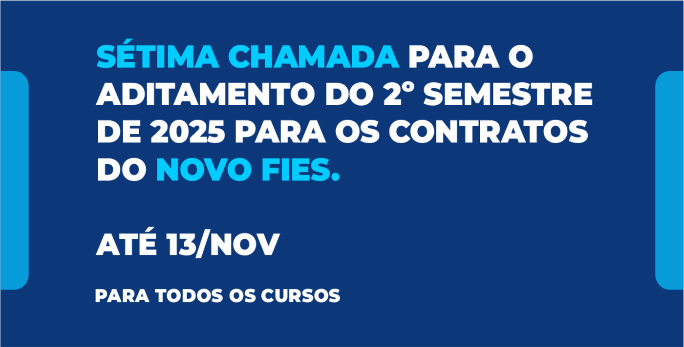 A Comissão Permanente de Supervisão e Acompanhamento (CPSA) do UNIFIP informa aos estudantes beneficiários do Fundo de Financiamento Estudantil (FIES) sobre a SÉTIMA CHAMADA para o aditamento referente ao 2º semestre de 2025.