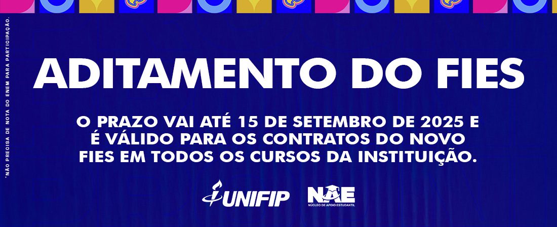 A Comissão Permanente de Supervisão e Acompanhamento (CPSA) do UNIFIP informa que está aberta a terceira chamada para o aditamento do FIES referente ao 2º semestre de 2025.