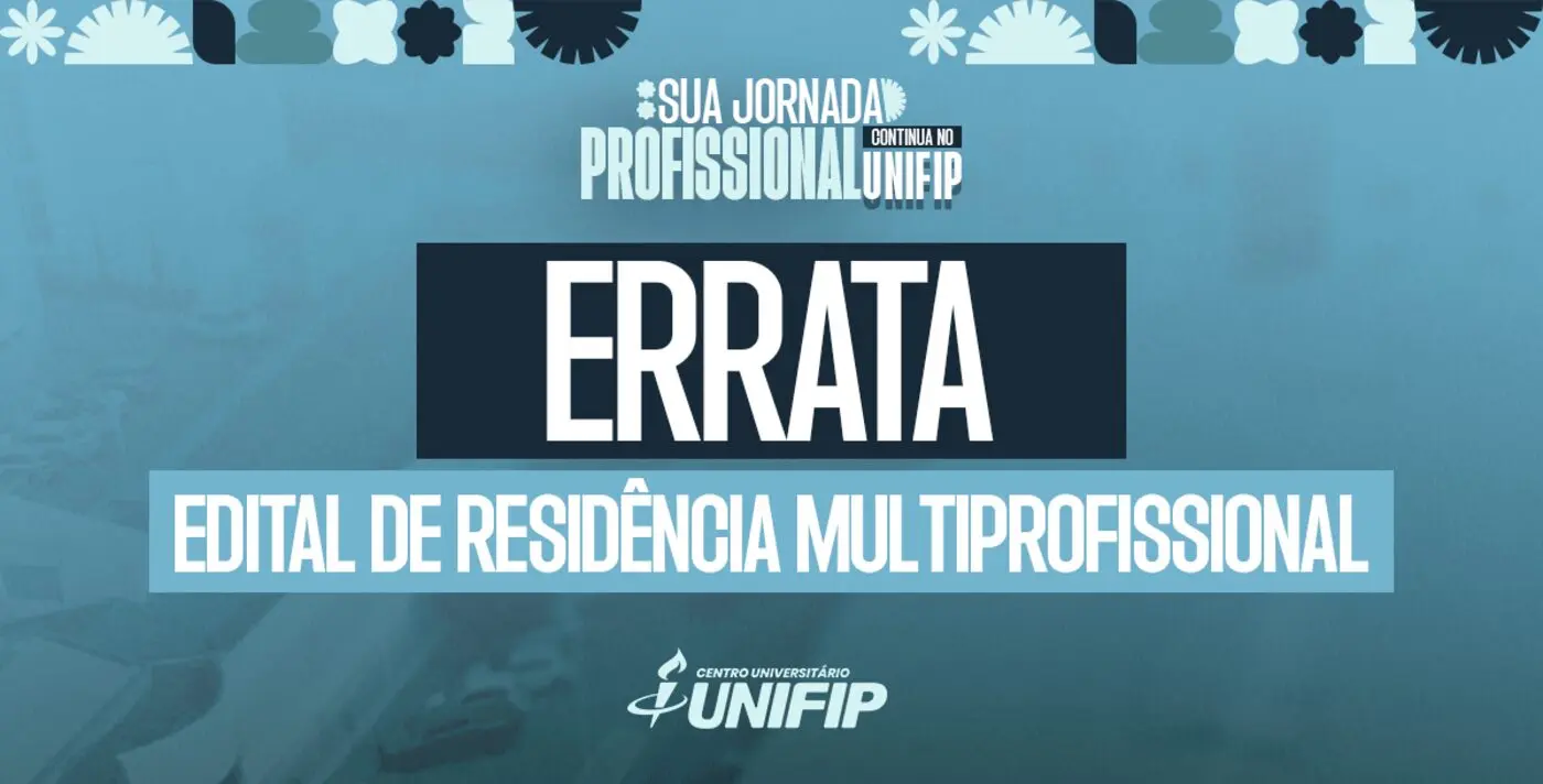 O Unifip divulgou a errata do Edital 002/2025, referente ao processo seletivo para ingresso nos Programas de Residência Multiprofissional em Atenção Primária à Saúde e Residência Multiprofissional em Saúde Mental, com início no período letivo 2026/2028.
